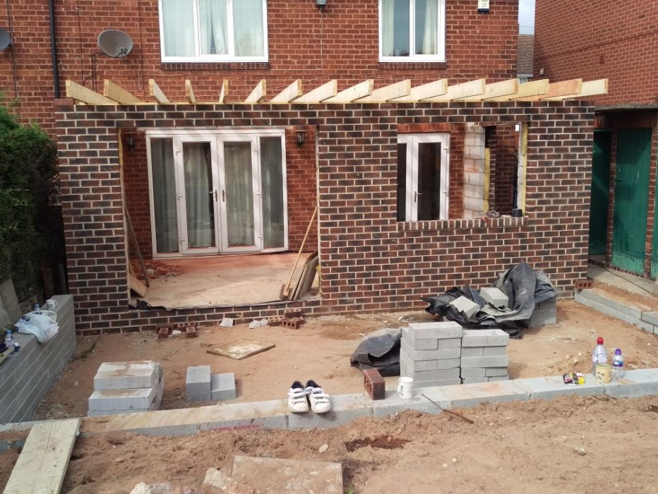 Before to After photos - Building a rear single storey extension. S80 Worksop Completed March 2018
